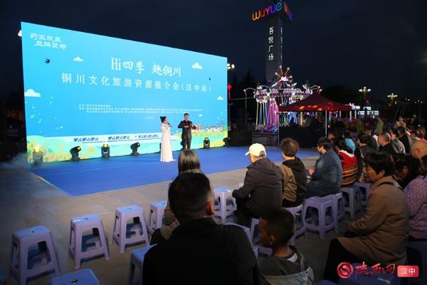 当晚7:30,吾悦广场华灯初上,铜川文旅在汉中路演推介活动火热开场。铜川全域文旅资源、药王山康养文化、照金红色记忆、耀州瓷千年技艺、玉华宫避暑胜境等铜川文旅资源的推介依次登场,配合歌曲《药王山的传说》、二胡演奏《步步生莲》、秦腔《大登殿》等精彩节目,全方位展现了“药王故里 丝路瓷都”的独特魅力。现场有奖互动环节更是吸引众多市民踊跃参与,其中铜川本地特色文创礼品广受欢迎。
